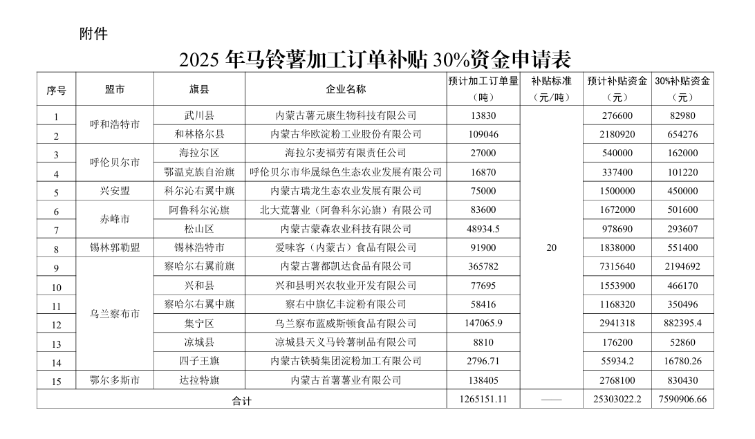附件:2025年馬鈴薯加工訂單補(bǔ)貼30%資金申請表
